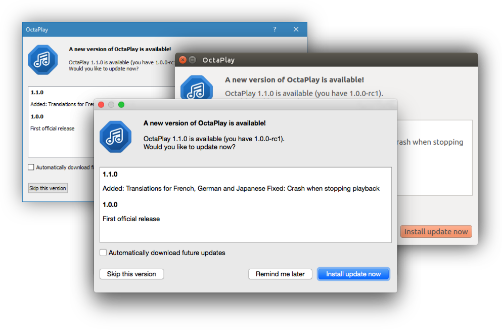 We have an SDK for C++/Qt that features a drop-in GUI and classes for building your own custom update experience.